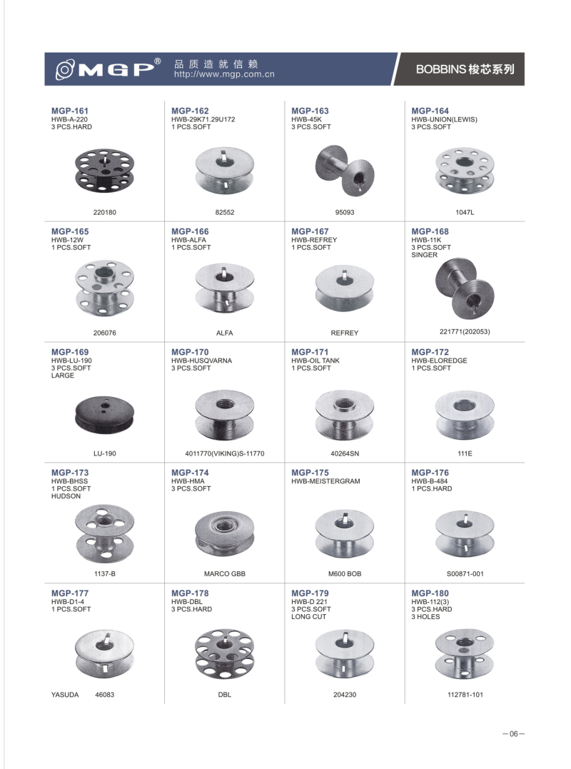 寧波市宏威機(jī)械制造有限公司2023-08-08寧波市宏威機(jī)械制造有限公司 MGP品牌成立于1990年,總部位于浙江寧波。企業(yè)分為浙江寧波、浙江紹興、河北、三大生產(chǎn)基地。全產(chǎn)業(yè)鏈自主生產(chǎn)的全產(chǎn)業(yè)鏈。是國(guó)內(nèi)較大的梭芯生產(chǎn)基地和縫紉機(jī)配件的企業(yè)之一。是我國(guó)縫配件梭芯、梭殼縫配件出口量較大企業(yè)。MGP品牌產(chǎn)品與各大整機(jī)公司配套,并銷(xiāo)售80多個(gè)地區(qū),深受客戶信賴(lài)。